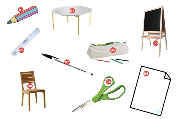 Voici des objets que tu dois nommer. Écris le nom de chaque objet